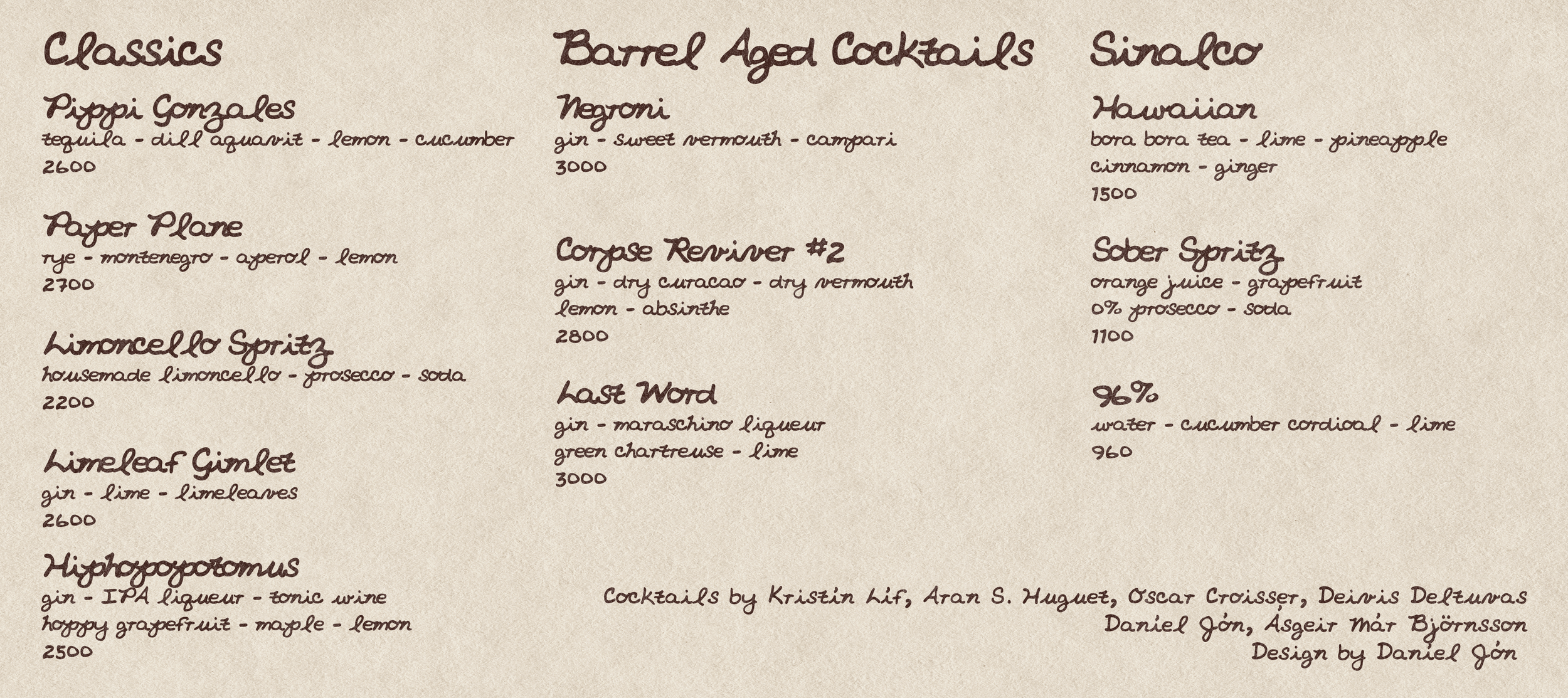 Vann lengi vel á Slippbarnum og sá oftar en ekki um kokteilseðlahönnun.